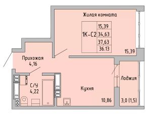 Общая площадь36,13 м²