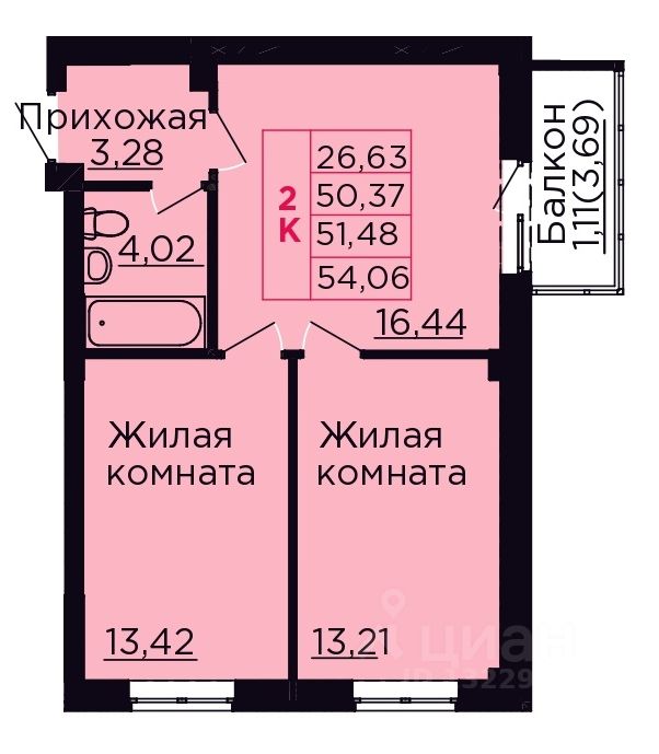 Продаётся светлая 2-комнатная квартира 51,48 кв. м в доме в центре Аксая, 5 км до Ростова. Сдача дома в 2026 году!