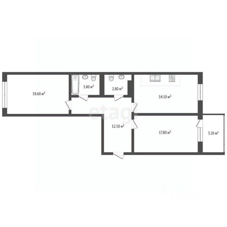 Продаётся двухкомнатная квартира в ЖК Гагарин площадью 73m², находится в "Золотом квадрате" Северного жилого массива.