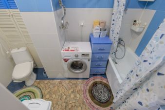 На полу в комнате и коридоре ламинат 33 класса, на кухне и в санузле плитка.