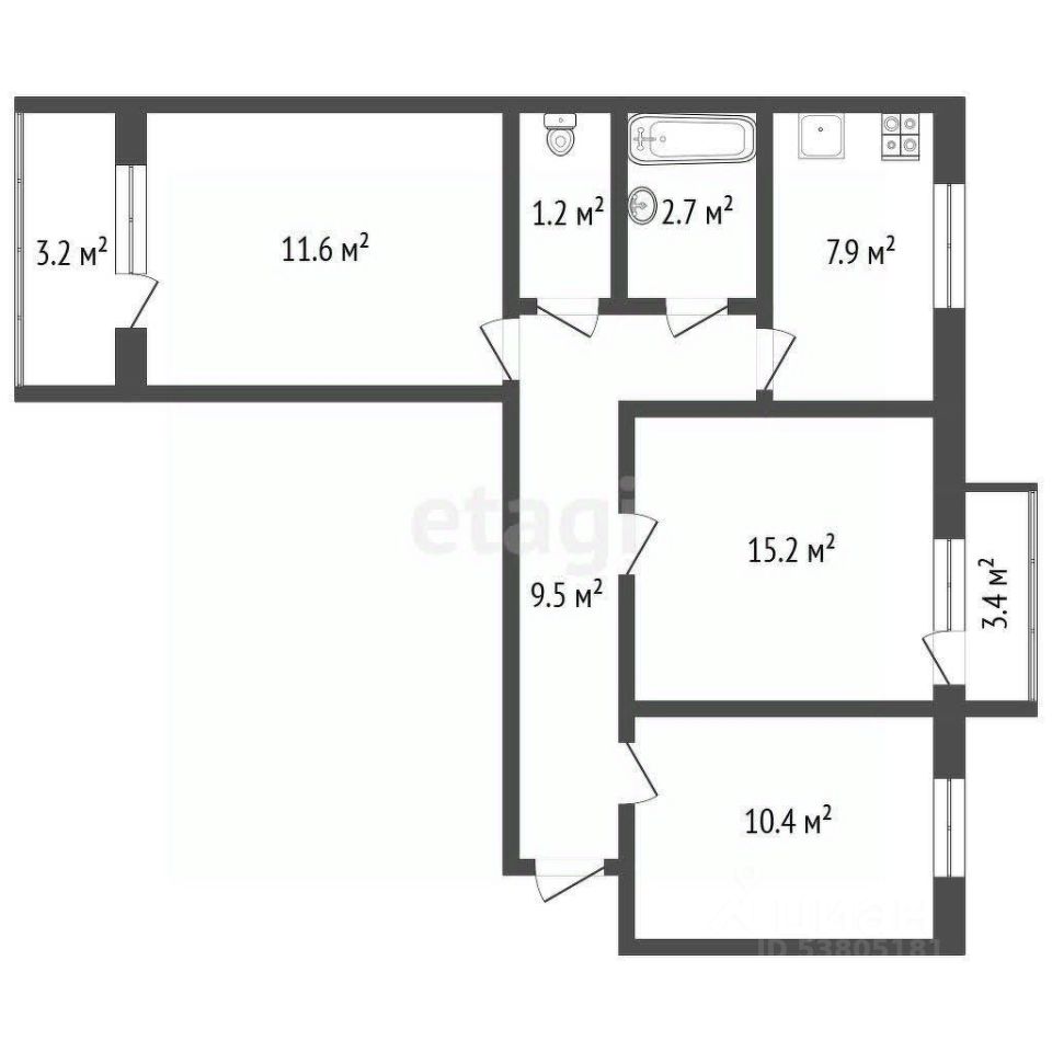 Продается 3-комнатная квартира общей площадью 59 м².