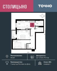 ЖК "Столицыно" — это самый масштабный проект ГК ТОЧНО в Ростовской области. На территории 42 га возводятся 18 домов переменной этажности, школа на 1300 мест, два детских сада на 600 мест, медицинский центр, парк 8,4 га и фитнес-центр с бассейном. Проект возводится по концепции "город в городе", где все необходимое для комфортной жизни будет в шаговой доступности.