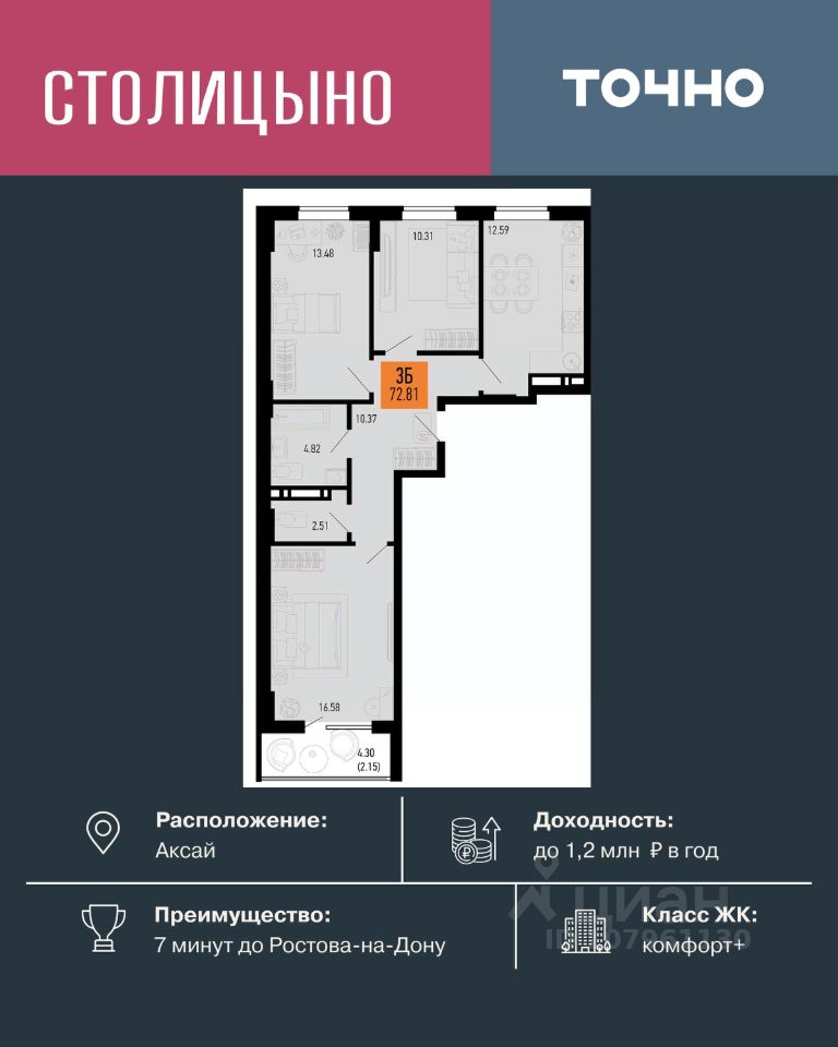 ЖК "Столицыно" — это самый масштабный проект ГК ТОЧНО в Ростовской области. На территории 42 га возводятся 18 домов переменной этажности, школа на 1300 мест, два детских сада на 600 мест, медицинский центр, парк 8,4 га и фитнес-центр с бассейном. Проект возводится по концепции "город в городе", где все необходимое для комфортной жизни будет в шаговой доступности.