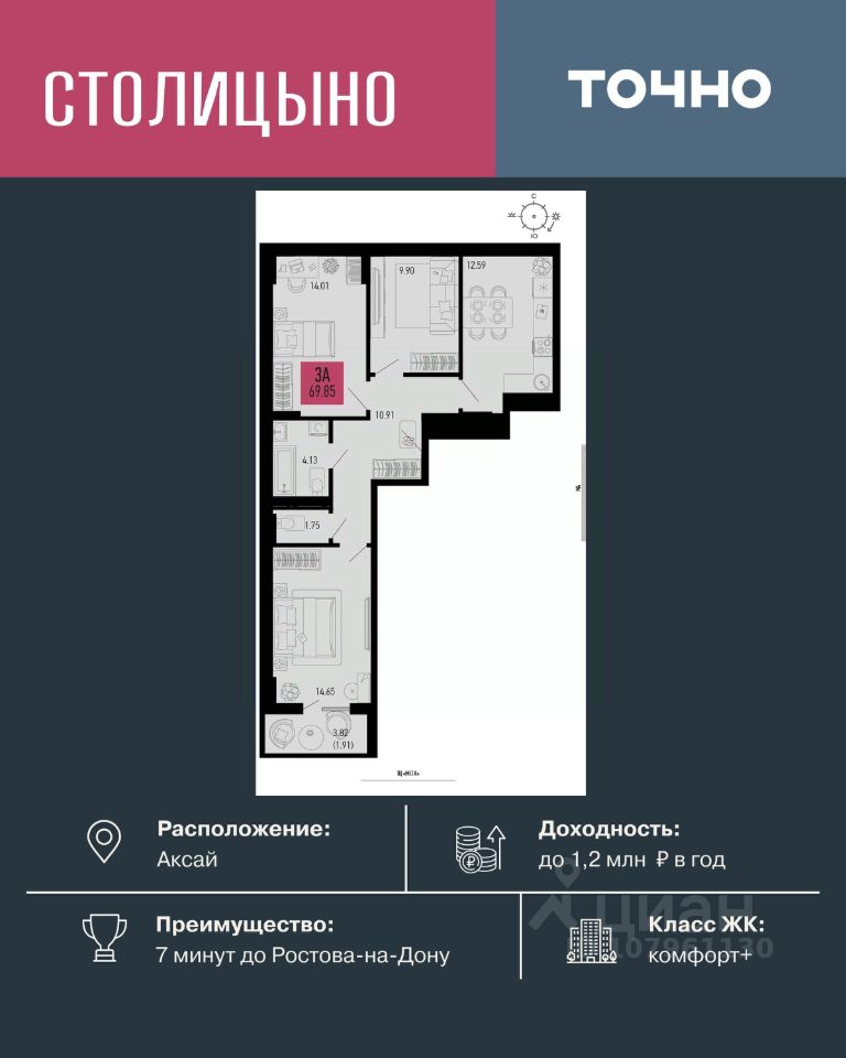 ЖК "Столицыно" — это самый масштабный проект ГК ТОЧНО в Ростовской области. На территории 42 га возводятся 18 домов переменной этажности, школа на 1300 мест, два детских сада на 600 мест, медицинский центр, парк 8,4 га и фитнес-центр с бассейном. Проект возводится по концепции "город в городе", где все необходимое для комфортной жизни будет в шаговой доступности.