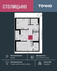 ЖК "Столицыно" — это самый масштабный проект ГК ТОЧНО в Ростовской области. На территории 42 га возводятся 18 домов переменной этажности, школа на 1300 мест, два детских сада на 600 мест, медицинский центр, парк 8,4 га и фитнес-центр с бассейном. Проект возводится по концепции "город в городе", где все необходимое для комфортной жизни будет в шаговой доступности.