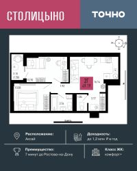 ЖК "Столицыно" — это самый масштабный проект ГК ТОЧНО в Ростовской области. На территории 42 га возводятся 18 домов переменной этажности, школа на 1300 мест, два детских сада на 600 мест, медицинский центр, парк 8,4 га и фитнес-центр с бассейном. Проект возводится по концепции "город в городе", где все необходимое для комфортной жизни будет в шаговой доступности.