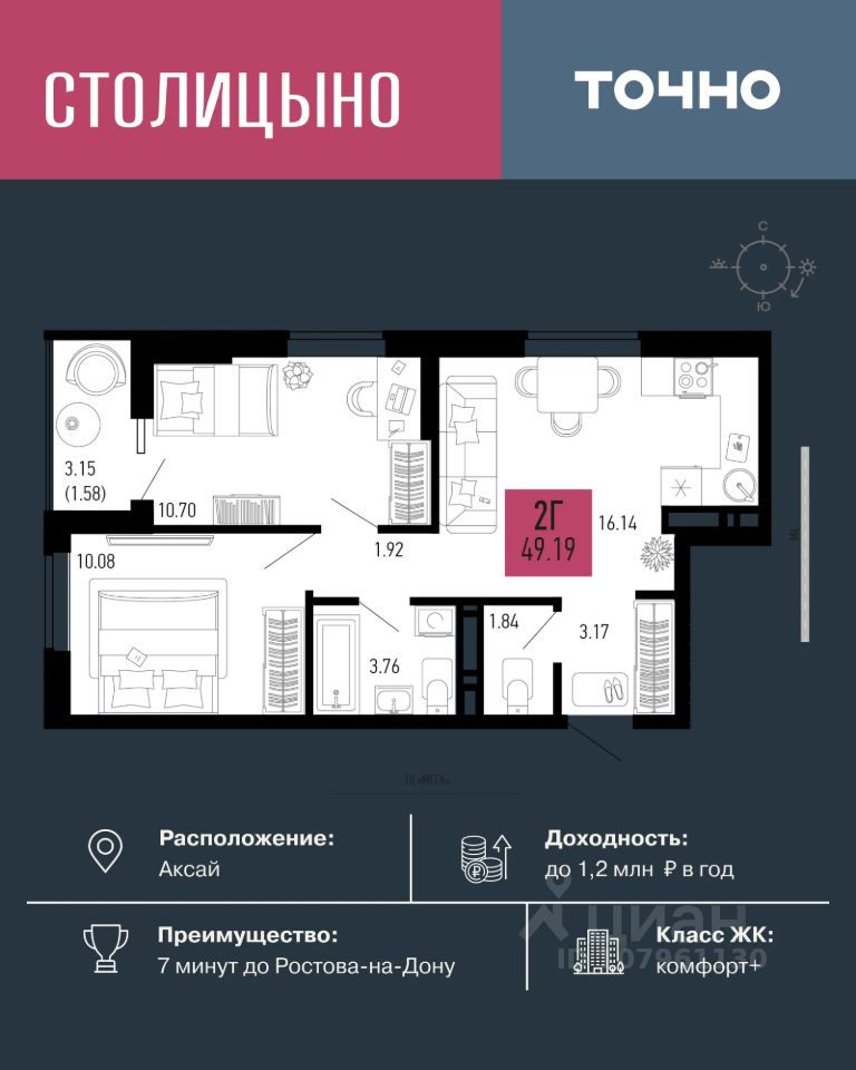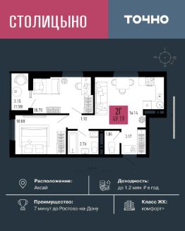 ЖК "Столицыно" — это один из самых масштабных проектов Ростовской области. Микрорайон площадью 42 га рассчитан на 30 000 жителей и включает 18 жилых домов классов "бизнес" и "комфорт плюс" переменной этажности от 8 до 18 этажей. Всё это — в окружении зелёных зон и с прямым выходом к будущей транспортной развязке. Проект релизуется по концепции "город в городе", где все необходимое для комфортной жизни будет в шаговой доступности. Здесь появятся: школа на 1300 мест, два детских сада на 600 мест, медицинский центр, ланшафтный парк площадью 8,4 га и фитнес-центр с бассейном. ЖК "Столицыно" находится в 350 метрах от ТРЦ "Мега", а также является ближайшим жилым комплексом к аэропорту "Платов".