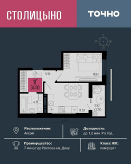 ЖК "Столицыно" — это один из самых масштабных проектов Ростовской области. Микрорайон площадью 42 га рассчитан на 30 000 жителей и включает 18 жилых домов классов "бизнес" и "комфорт плюс" переменной этажности от 8 до 18 этажей. Всё это — в окружении зелёных зон и с прямым выходом к будущей транспортной развязке. Проект релизуется по концепции "город в городе", где все необходимое для комфортной жизни будет в шаговой доступности. Здесь появятся: школа на 1300 мест, два детских сада на 600 мест, медицинский центр, ланшафтный парк площадью 8,4 га и фитнес-центр с бассейном. ЖК "Столицыно" находится в 350 метрах от ТРЦ "Мега", а также является ближайшим жилым комплексом к аэропорту "Платов".