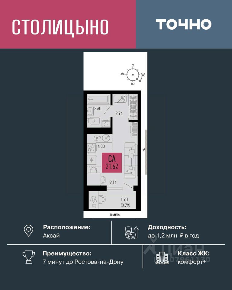 Продается студия, 21,62 м²