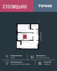 ЖК "Столицыно" — это самый масштабный проект ГК ТОЧНО в Ростовской области. На территории 42 га возводятся 18 домов переменной этажности, школа на 1300 мест, два детских сада на 600 мест, медицинский центр, парк 8,4 га и фитнес-центр с бассейном. Проект возводится по концепции "город в городе", где все необходимое для комфортной жизни будет в шаговой доступности.