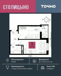 ЖК "Столицыно" — это самый масштабный проект ГК ТОЧНО в Ростовской области. На территории 42 га возводятся 18 домов переменной этажности, школа на 1300 мест, два детских сада на 600 мест, медицинский центр, парк 8,4 га и фитнес-центр с бассейном. Проект возводится по концепции "город в городе", где все необходимое для комфортной жизни будет в шаговой доступности.
