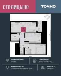 ЖК "Столицыно" — это самый масштабный проект ГК ТОЧНО в Ростовской области. На территории 42 га возводятся 18 домов переменной этажности, школа на 1300 мест, два детских сада на 600 мест, медицинский центр, парк 8,4 га и фитнес-центр с бассейном. Проект возводится по концепции "город в городе", где все необходимое для комфортной жизни будет в шаговой доступности.