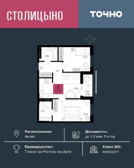 ЖК "Столицыно" — это один из самых масштабных проектов Ростовской области. Микрорайон площадью 42 га рассчитан на 30 000 жителей и включает 18 жилых домов классов "бизнес" и "комфорт плюс" переменной этажности от 8 до 18 этажей. Всё это — в окружении зелёных зон и с прямым выходом к будущей транспортной развязке. Проект релизуется по концепции "город в городе", где все необходимое для комфортной жизни будет в шаговой доступности. Здесь появятся: школа на 1300 мест, два детских сада на 600 мест, медицинский центр, ланшафтный парк площадью 8,4 га и фитнес-центр с бассейном. ЖК "Столицыно" находится в 350 метрах от ТРЦ "Мега", а также является ближайшим жилым комплексом к аэропорту "Платов".