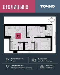 ЖК "Столицыно" — это самый масштабный проект ГК ТОЧНО в Ростовской области. На территории 42 га возводятся 18 домов переменной этажности, школа на 1300 мест, два детских сада на 600 мест, медицинский центр, парк 8,4 га и фитнес-центр с бассейном. Проект возводится по концепции "город в городе", где все необходимое для комфортной жизни будет в шаговой доступности.