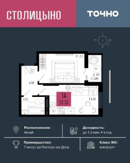 ЖК "Столицыно" — это один из самых масштабных проектов Ростовской области. Микрорайон площадью 42 га рассчитан на 30 000 жителей и включает 18 жилых домов классов "бизнес" и "комфорт плюс" переменной этажности от 8 до 18 этажей. Всё это — в окружении зелёных зон и с прямым выходом к будущей транспортной развязке. Проект релизуется по концепции "город в городе", где все необходимое для комфортной жизни будет в шаговой доступности. Здесь появятся: школа на 1300 мест, два детских сада на 600 мест, медицинский центр, ланшафтный парк площадью 8,4 га и фитнес-центр с бассейном. ЖК "Столицыно" находится в 350 метрах от ТРЦ "Мега", а также является ближайшим жилым комплексом к аэропорту "Платов".