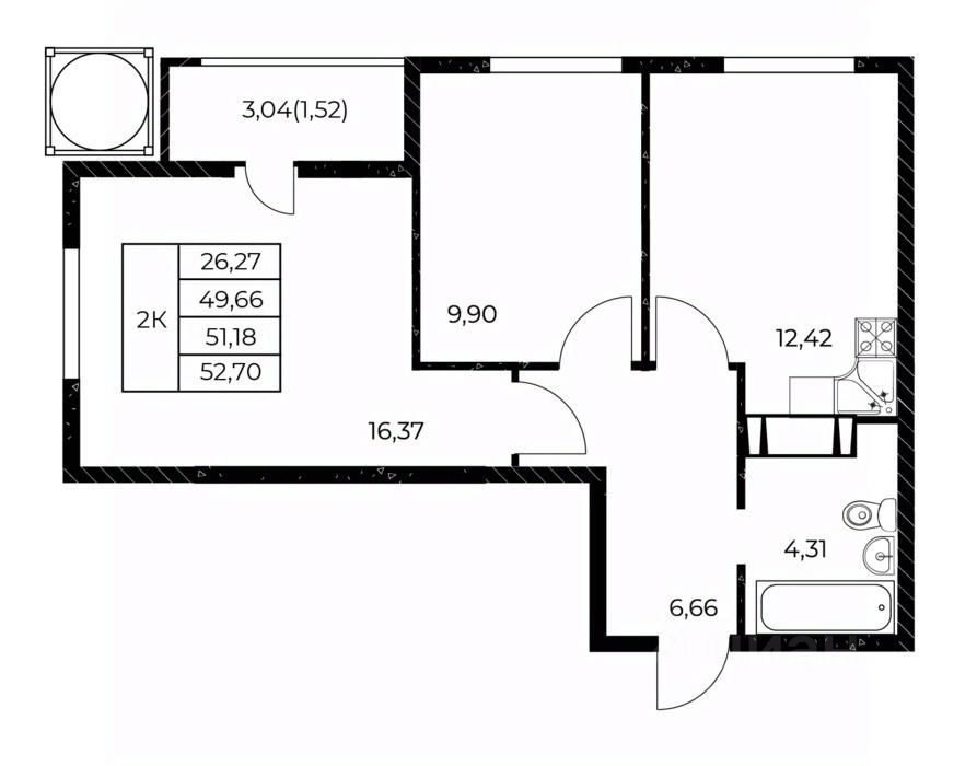 Общая площадь52,7 м²