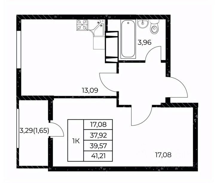 Общая площадь41,21 м²