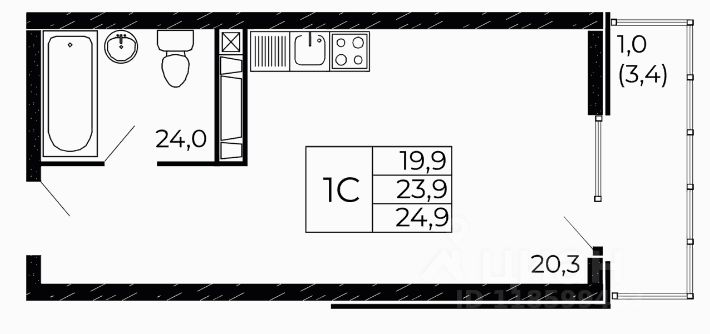 Общая площадь24,9 м²