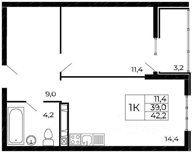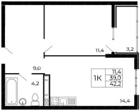 Жилая площадь11,4 м²