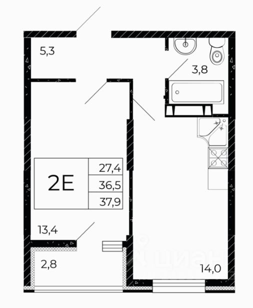 Общая площадь37,6 м²