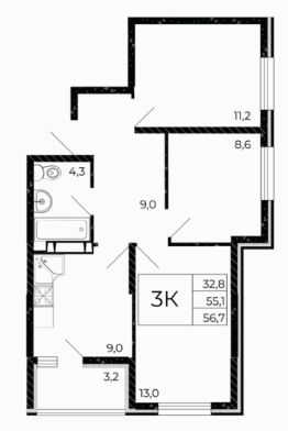 32,8 м²