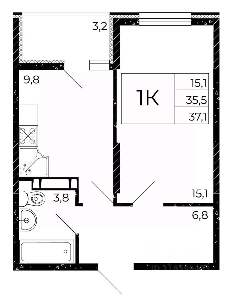 Жилая площадь15,1 м²