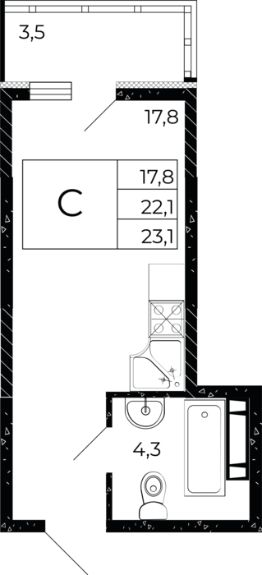 Продается студия, 23,1 м²