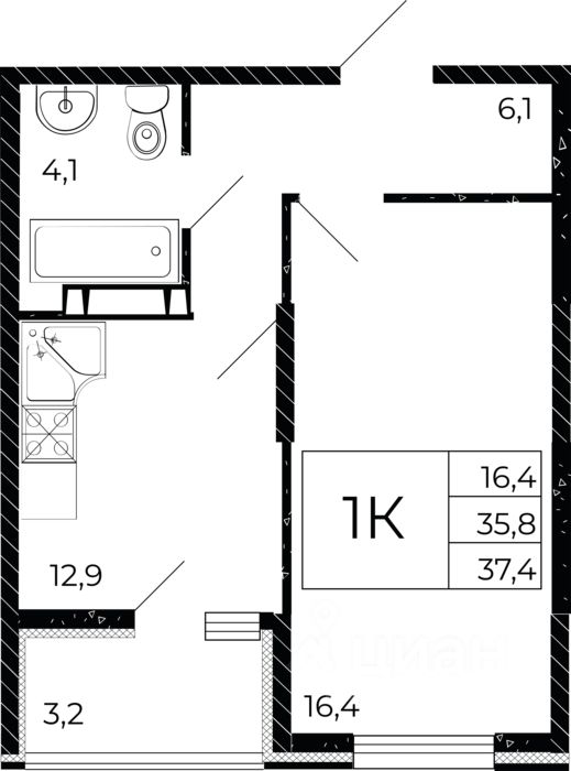 Общая площадь37,4 м²