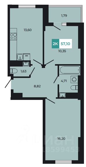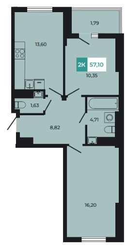 Общая площадь57,11 м²