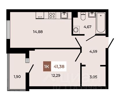 Общая площадь41,07 м²