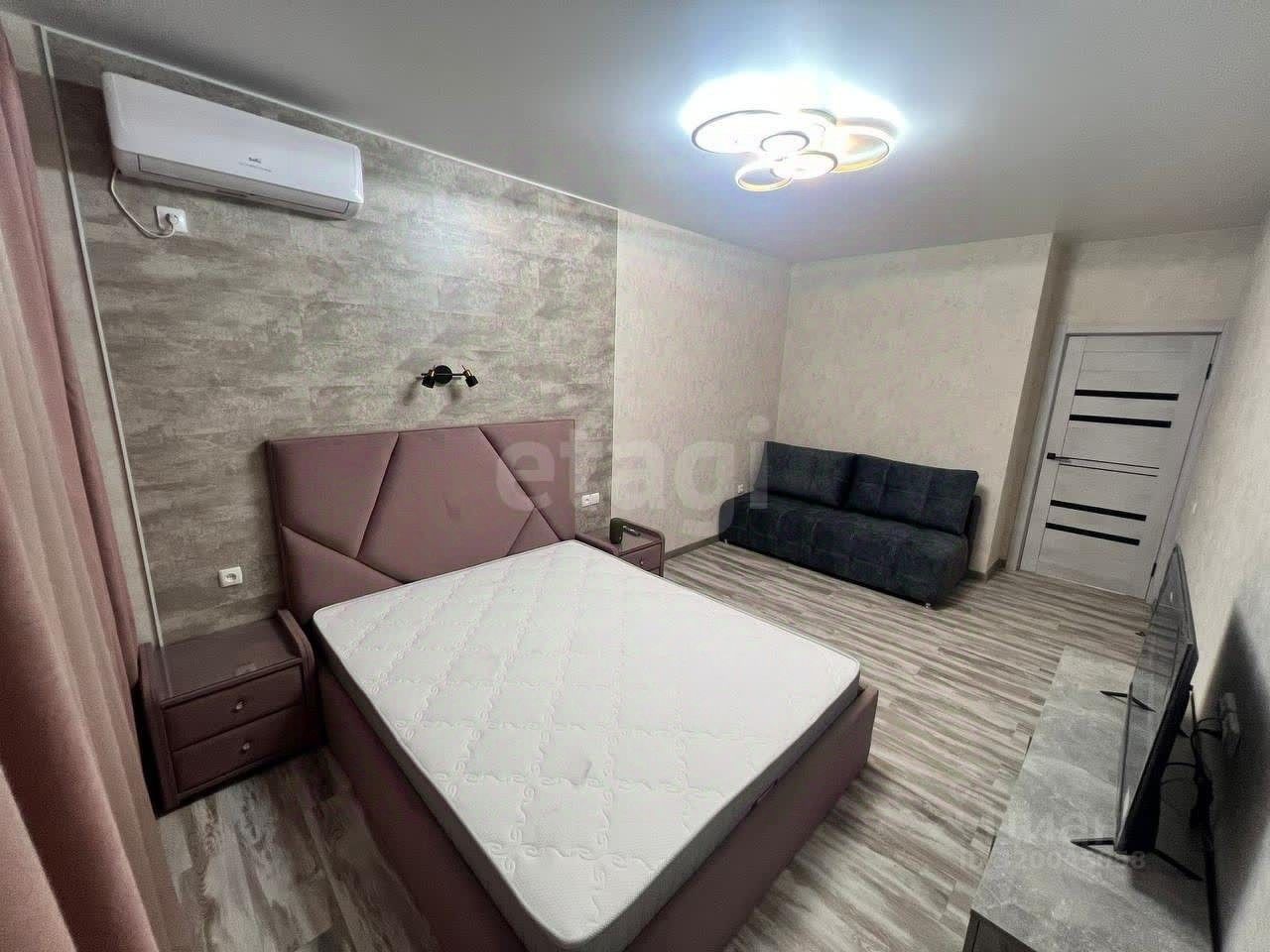 Просторная однокомнатная квартира площадью 45 м² расположена в экологически благополучном районе Вересаева. Жилая зона составляет 16,9 м², кухня — 12,3 м², что позволяет комфортно разместить обеденную группу и организовать функциональное пространство для готовки. Высота потолков 2,9 м и панорамные окна создают ощущение простора и наполняют помещение естественным светом. Квартира полностью готова к проживанию: выполнен качественный дизайнерский ремонт с продуманной отделкой, установлена современная бытовая техника (кондиционер, холодильник, стиральная машина, водонагреватель), мебель и гардеробная система.