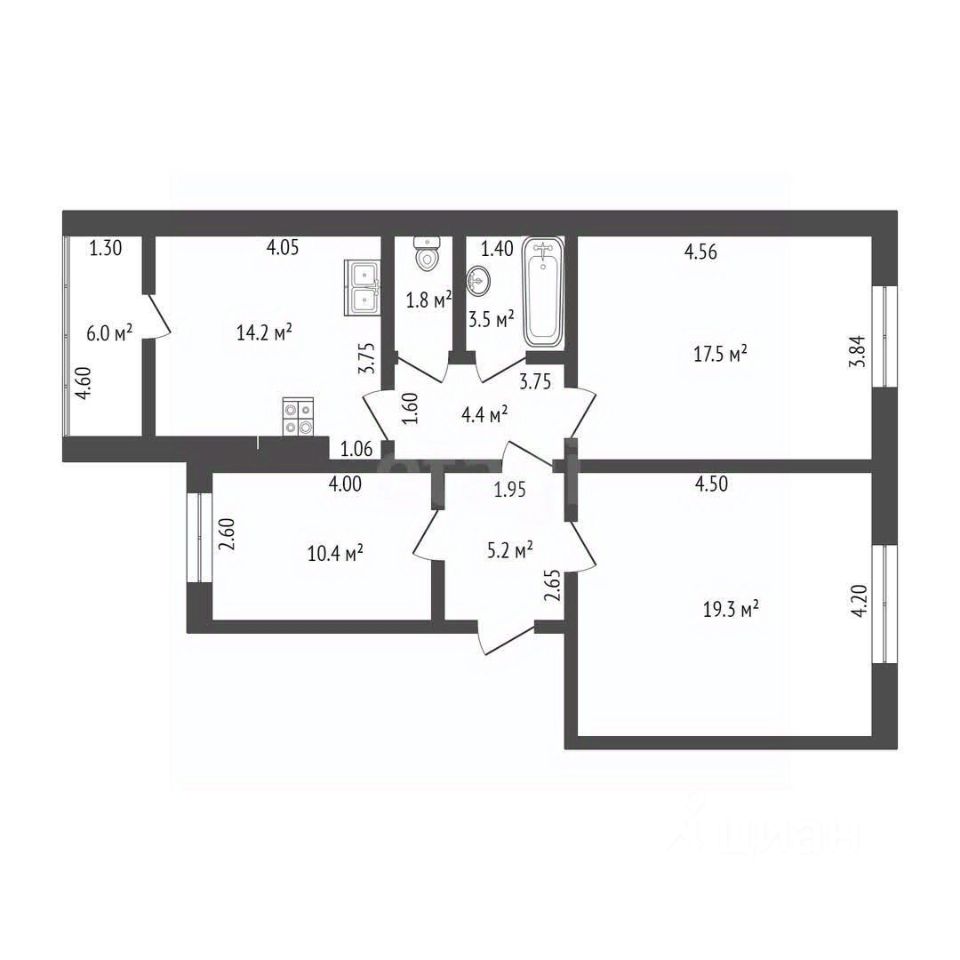 76,9 м²