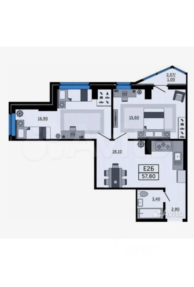 58 м²