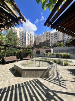 ЖК расположен в тихой,зеленой зоне,в 15 минутах езды от центра города.На территории много хвойной зелени,цветов,есть места для отдыха,занятий спортом и прогулок.Детские площадки,двор без машин.Фонтан!Камеры видео наблюдения.
