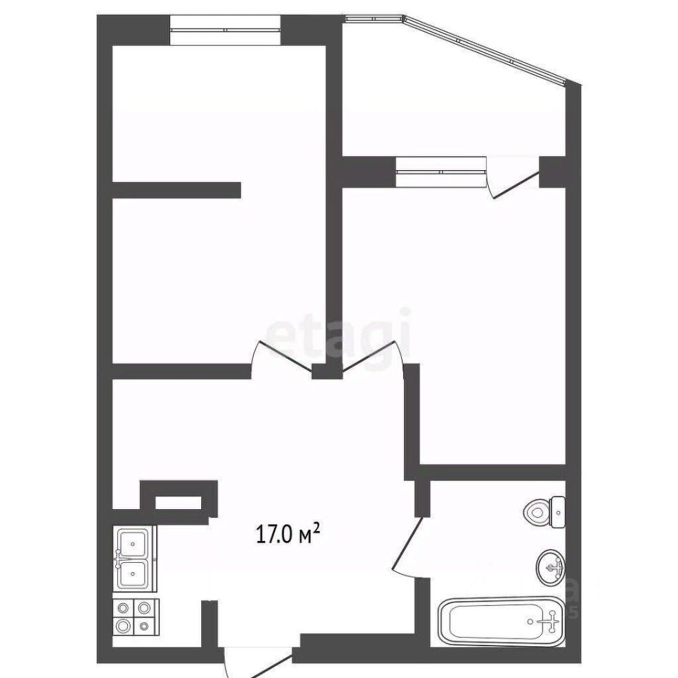 Параметры квартиры: общая площадь 45,9 кв.м., Кухня-гостиная 17 кв.м., высота потолка 2,7 м.