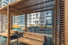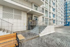 Во дворе предусмотрены места для отдыха, детские площадки, зоны для занятий спортом, а также комплексное озеленение. Есть пандусы для маломобильных групп населения.