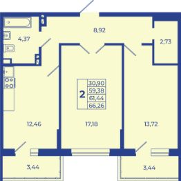 Продается 2-комн. квартира, 66,26 м²