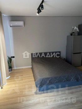 В студии сделан современный ремонт, теплые полы, инсталляция Rocca, кондиционер, большой шкаф для хранения вещей, микроволновка, кровать с подъемным механизмом, панорамное остекление с прекрасным видом во двор , утепленный балкон с теплым полом.