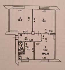 Общая площадь 70 кв.м, расположена на 3-м этаже 3 этажного кирпичного дома.