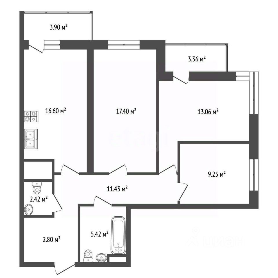 Квартира с черновой отделкой, что дает вам возможность реализовать свои дизайнерские идеи и создать пространство своей мечты.