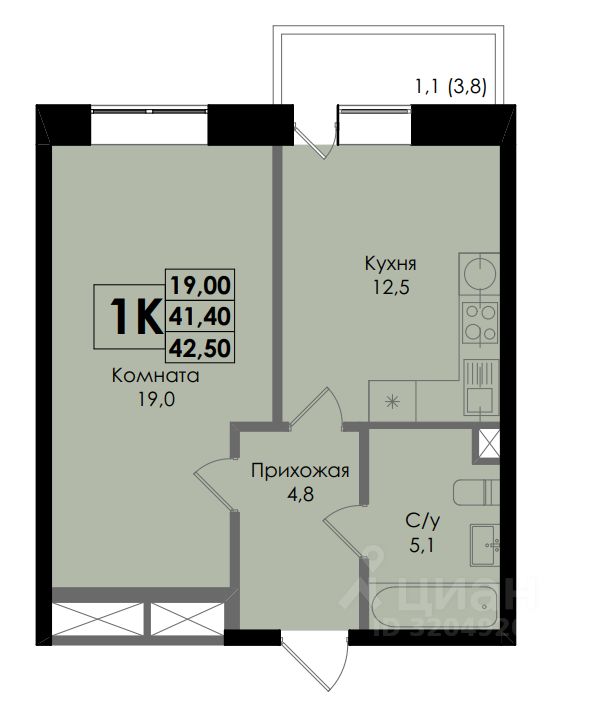 Общая площадь42,5 м²