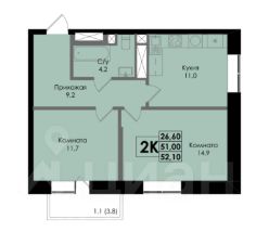 Общая площадь52,1 м²