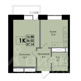 Общая площадь37,14 м²