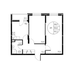 Общая площадь55,2 м²