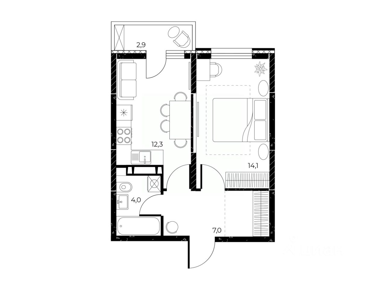 Общая площадь38,3 м²