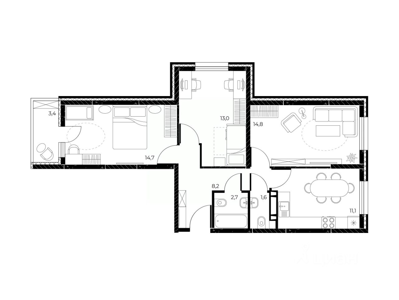 Общая площадь67,8 м²