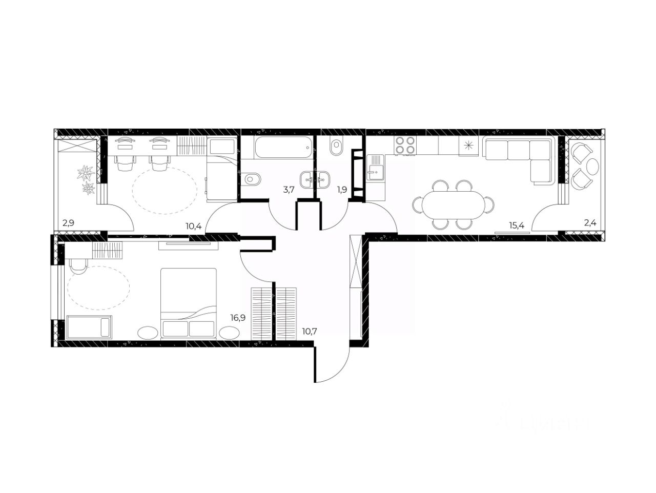 Коллекционируйте воспоминания о счастливых днях. В большой кухне-гостиной соберитесь с самыми близкими, встретьтесь с друзьями в гостиной, играйте с ребенком и изучайте новых сказочных героев в светлой детской, по-настоящему отдыхайте в уютной спальне насыщенного дня или проведите свидание с солнцем и потрясающим видом на балконе с панорамными окнами.