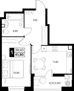 Общая площадь41,8 м²