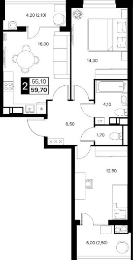 Общая площадь59,7 м²