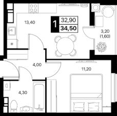 Общая площадь34,5 м²